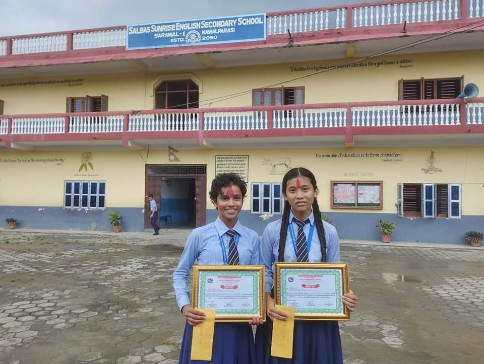 Salbas Sunrise is an English medium coeducational private school, was established in 2050 BS. at Sarawal Rural Municipality ward No. 1, Salbas, Nawalparasi(west), Lumbini, Nepal. The school was founded by some academicians, professional and social workers to lunch quality education to the children through an organised institution. The main aim of the school is to provide modern, scientific, competent and life-based practical education to produce efficient, competent and capable human resource as per the need of the society, nation and global requirement.